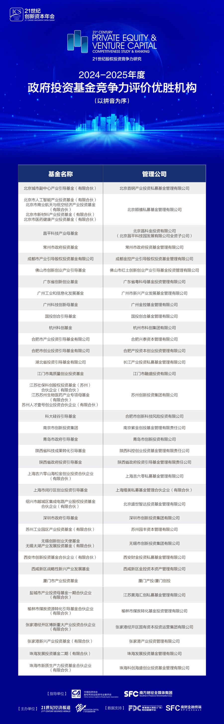 2024—2025年度政府投资基金竞争力评价优胜机构